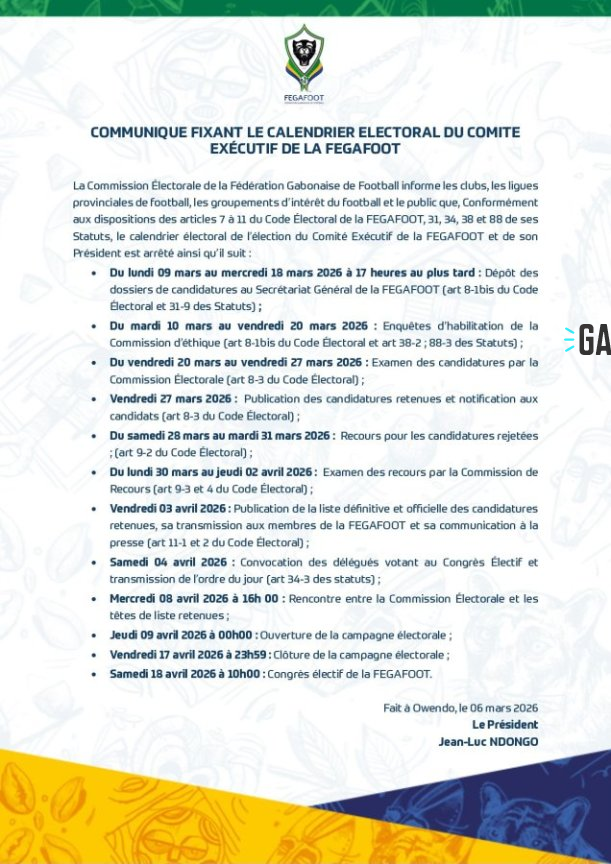 La commission électorale de la Fédération gabonaise de football (Fégafoot) a officiellement dévoilé, le 6 mars dernier, le calendrier menant au renouvellement de son comité exécutif. Cette feuille de route très attendue par les acteurs du ballon rond précise notamment la période cruciale du dépôt des candidatures pour briguer la présidence de l’instance dirigeante du football national.